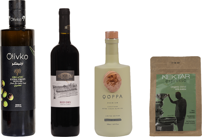 Meat products, Dairy, Olive oils, Various oils, Sauces, Soups, Powders ready for the preparation of foods, Conserves, Jams, Eggs, Desserts, Frozen Foods, Delicatessen foods and beverages, Fresh foods and vegetables, Healthy or Diet Products, Honeys, Marmalade, General grocery foods, Pasta, Herbs, Sodas, Mineral Waters, Sparkling Waters, Juices, Milk, Low-alcohol beverages, Soft drinks, Coffees, Herbal Teas, Chocolates, Sweets…